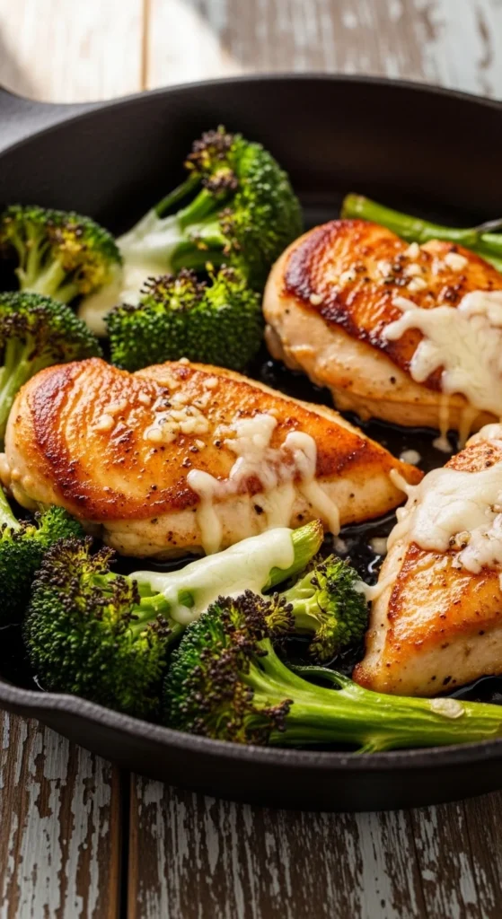 Juicy chicken and tender broccoli cook together for a fast, cheesy dinner.
