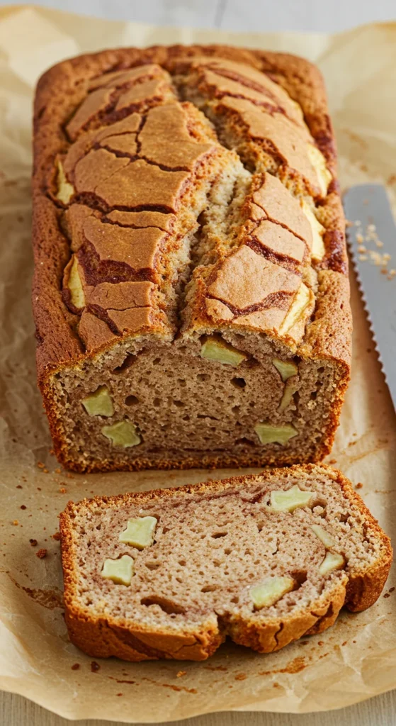 Soft crumb, warm spice, and juicy apple bits—this is the anytime apple loaf.
