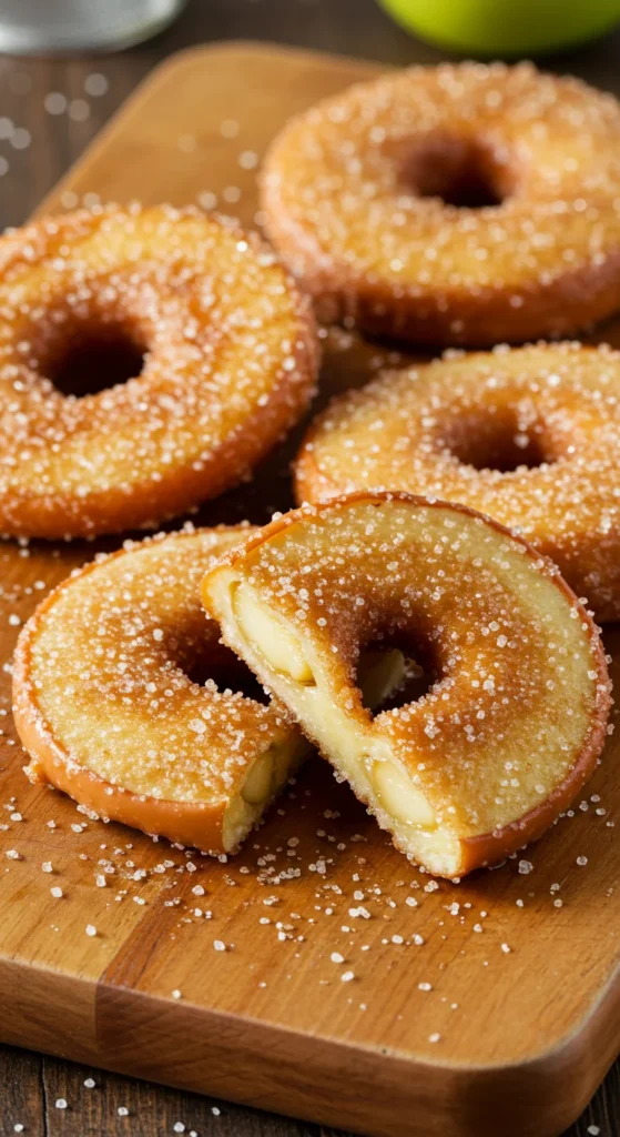 Whole apple rings encased in fluffy donut batter — a fun, fruity twist.