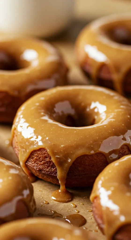 These donuts are soft inside with a sticky, sweet caramel coating — like a caramel apple in donut form.
