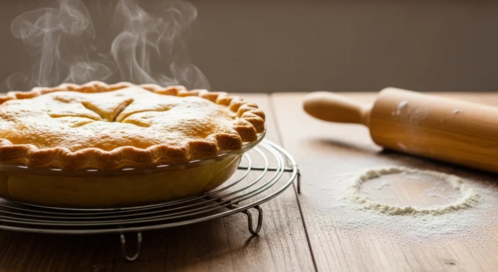 This resting period allows the gluten to relax and the butter to re-solidify — both essential for a tender, flaky crust.