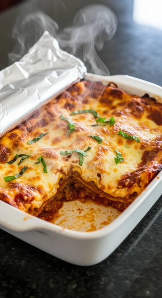 If your lasagna still looks too liquidy at the end, keep it uncovered for a few extra minutes. This helps evaporate moisture and creates a lovely cheesy crust.