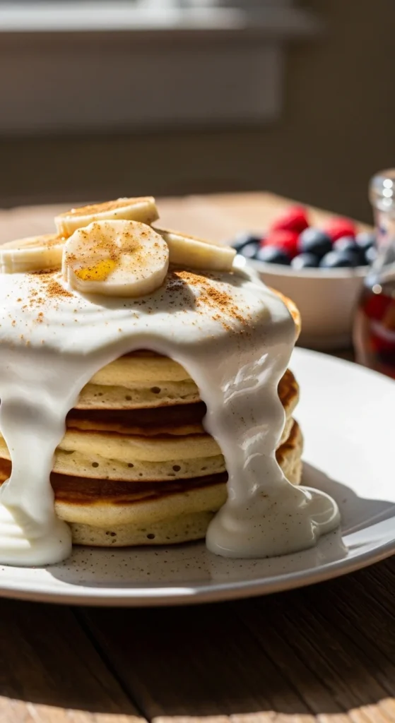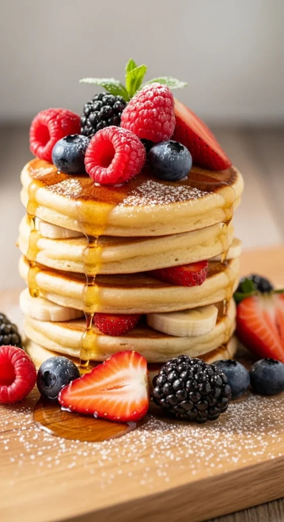 Set out toppings like berries, yogurt, and syrup so everyone can build their own stack.