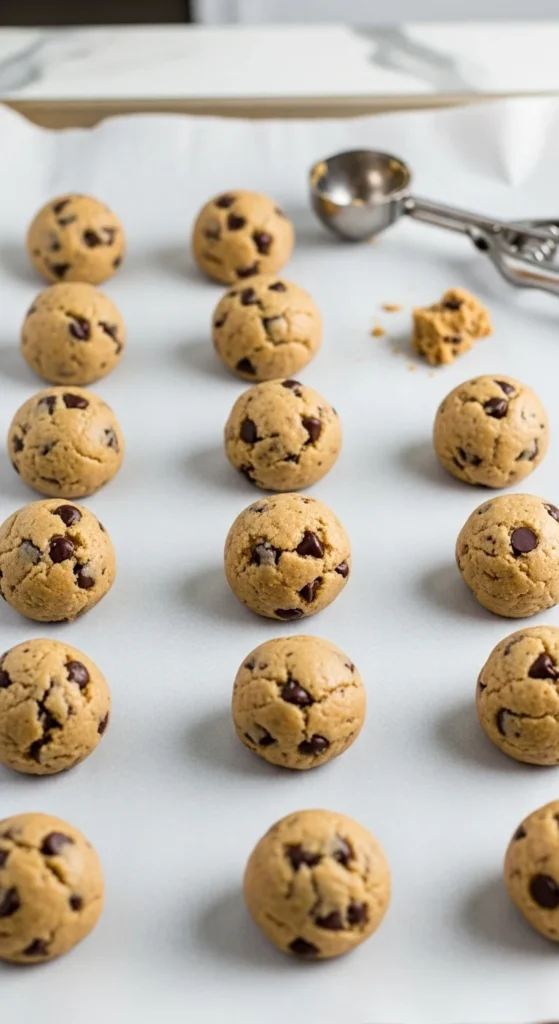 Uniform scoops = even baking. If the recipe mentions scoop size (1–3 tablespoons or ¼ cup for jumbo), that’s a good sign.