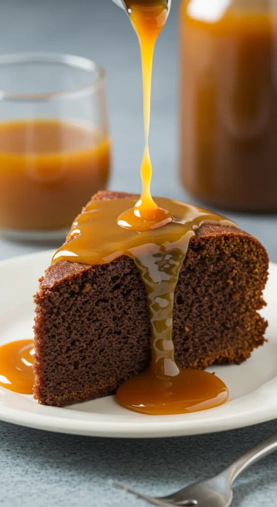 A buttery, simple cake drenched in warm caramel sauce.