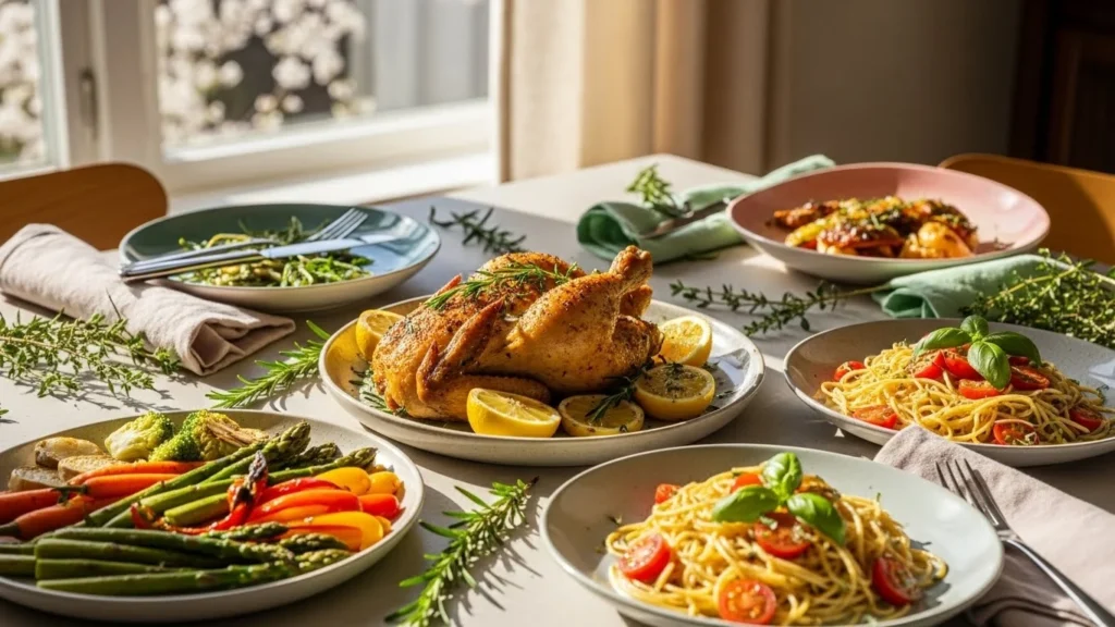 Introduction Spring dinners should feel light, colorful, and easy to enjoy. These recipes focus on fresh ingredients, simple cooking, and flavors that don’t weigh you down. Whether you’re cooking for family or a quiet evening, these meals fit perfectly with longer days and lighter appetites. 1. Lemon Garlic Chicken Skillet A quick skillet meal with bright citrus flavor and tender chicken. Ingredients Instructions How to Serve It Serve with steamed green beans or a simple salad. 2. Spring Vegetable Pasta Light pasta packed with green vegetables and simple seasoning. Ingredients Instructions How to Serve It Finish with grated parmesan or … Read more