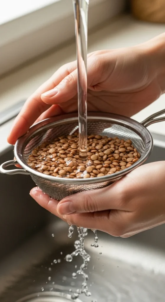 Start with a simple but essential step — rinse your lentils under cool water. This removes dust or debris that can linger from processing.