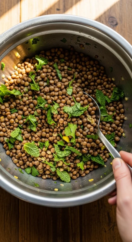 Once your lentils reach the right texture, drain any excess liquid using a fine strainer. Then, season them while they’re still warm — this helps them soak up flavor better.
