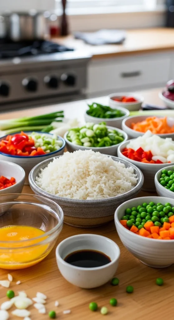 Once you start cooking, fried rice comes together fast—so prep all your ingredients beforehand. This makes the process smooth and ensures everything cooks evenly.