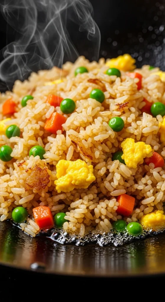 Here’s the secret: Don’t stir constantly. Let the rice sit for 20–30 seconds at a time so it can brown slightly and develop that signature fried texture.