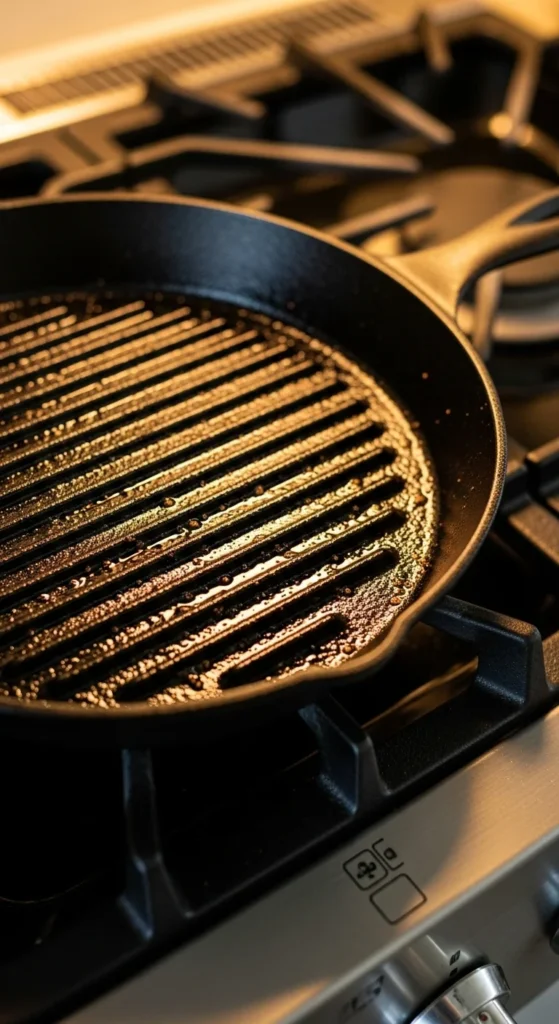 Preheating is the secret to those perfect sear marks and smoky flavor. Cast iron needs time to get evenly hot, but once it does, it retains heat beautifully.