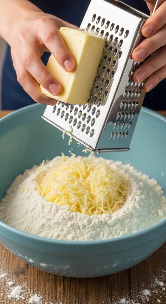 Instead of cutting butter into chunks, use a box grater to shred it directly into the flour.