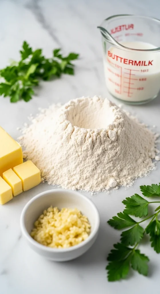To make garlic biscuits that are full of flavor and tender in the middle, gather these essentials: