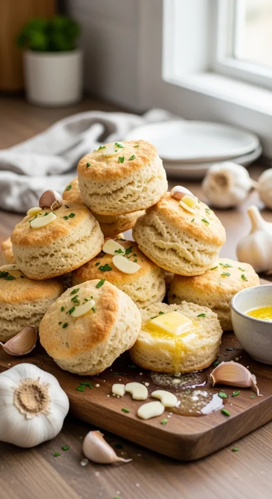 Place biscuits on the prepared baking sheet, leaving a small gap between each. Bake for 12–15 minutes or until golden brown on top. The kitchen will smell amazing as the garlic and butter bake together.