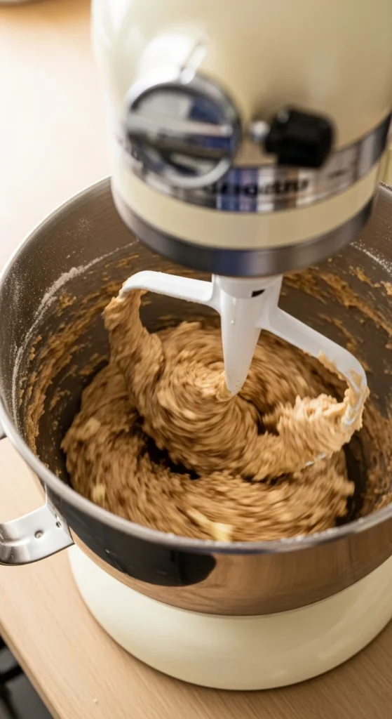 In a separate large bowl, beat the softened butter and brown sugar until fluffy and pale in color—about 2–3 minutes. Then, add the egg, molasses, and vanilla extract, mixing until fully combined.