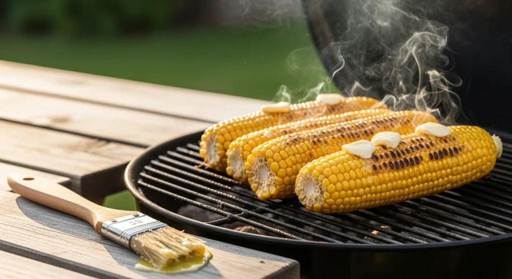 - Wrapped in foil – A middle ground for juicy corn with mild smokiness.