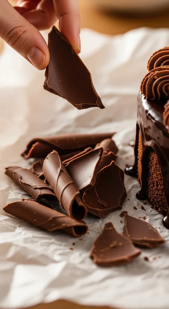 Pro tip: Chill the frosted cake 20–30 minutes before adding any chocolate decor.