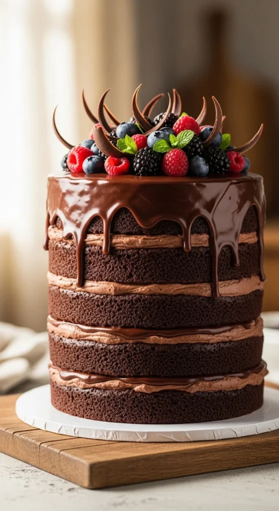 There’s something undeniably luxurious about a chocolate cake. Glossy ganache dripping down the sides, rich dark layers peeking through, delicate chocolate curls on top — it feels dramatic, elegant, and bakery-level impressive.