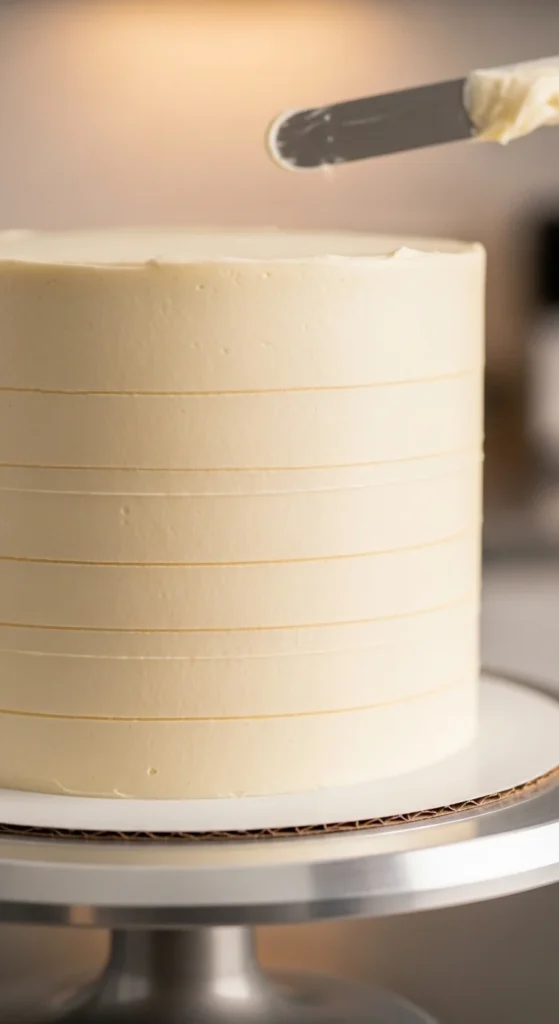 Turn the cake, not your wrist. It keeps shapes consistent and saves your hands.