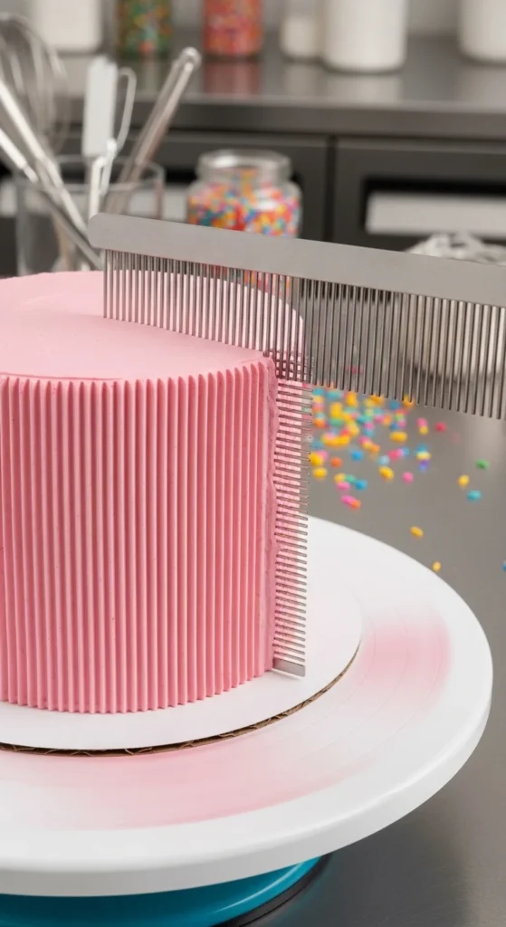 👉 Important: Add texture immediately while buttercream is fresh. Once it crusts, tools drag and tear.