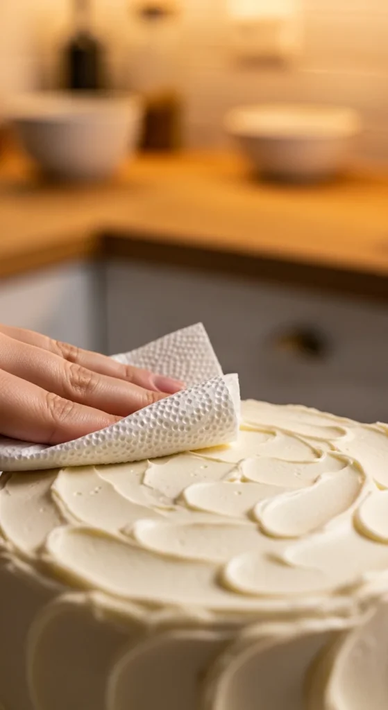 - Lightly press towel onto fresh buttercream