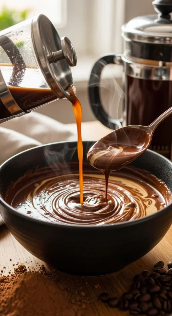 - Add 1–2 teaspoons espresso powder to dry ingredients