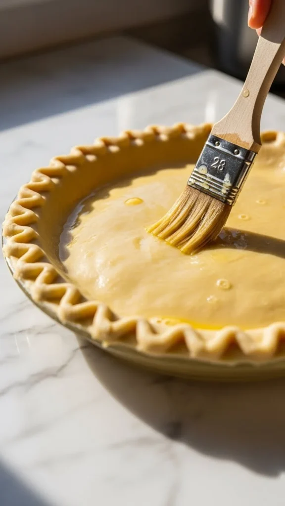 - Brush crust with egg white and pre-bake