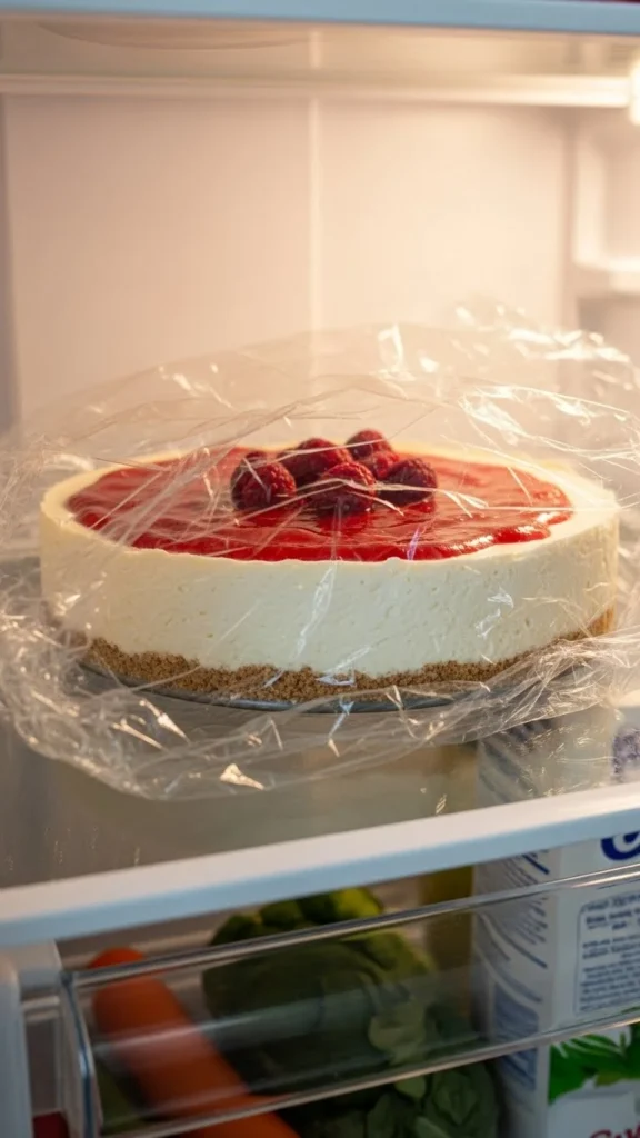 This allows fats to firm up and the cheesecake to fully set.