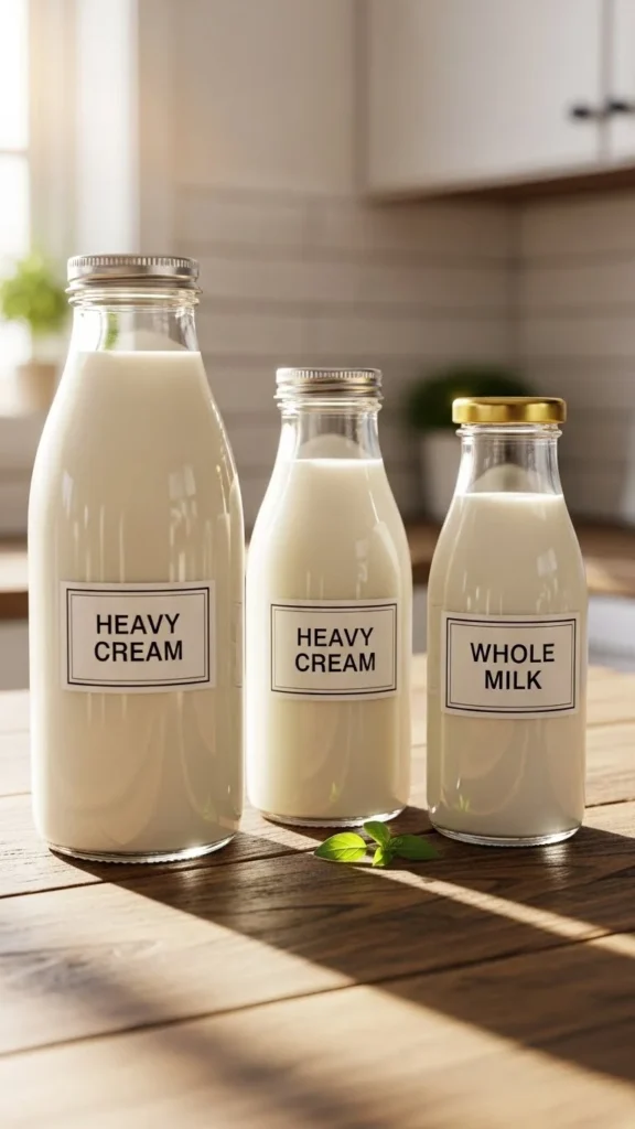 Heavy cream brings fat (which prevents ice crystals), while whole milk keeps the texture from feeling greasy.