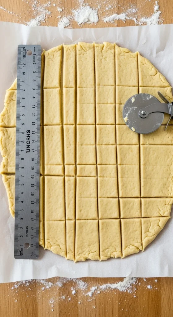 Use a ruler and pizza cutter or sharp knife for precision.