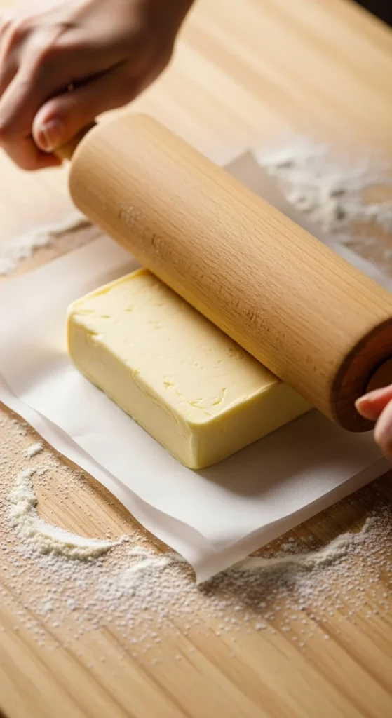 While the dough chills, prepare the butter layer—this is what creates those famous flaky layers.
