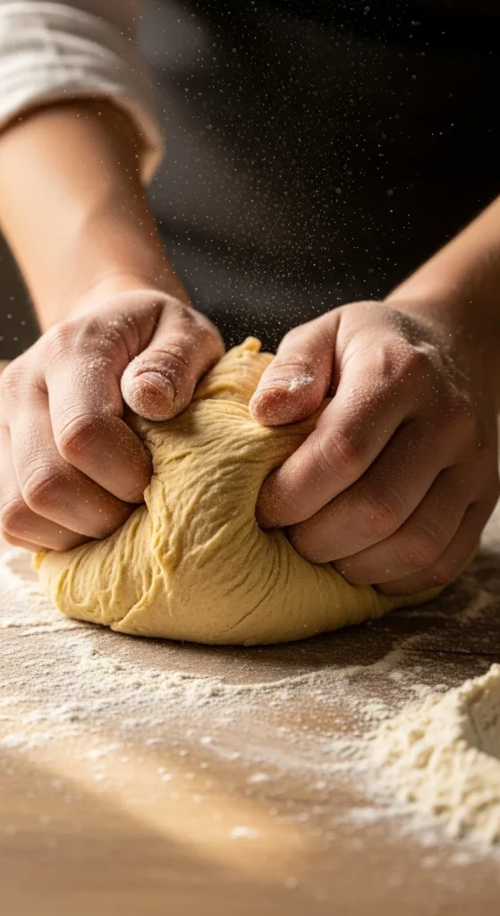 Now for the fun (and slightly messy) part — forming your dough by hand.