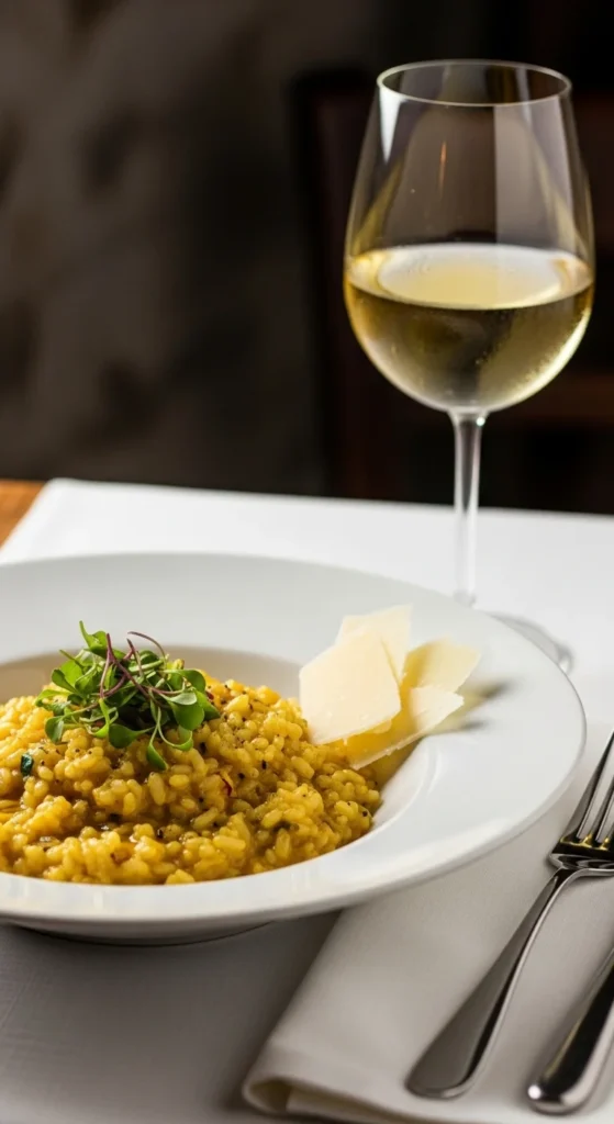 The result? A glossy, rich risotto that flows slightly on the plate — never sticky, never dry.