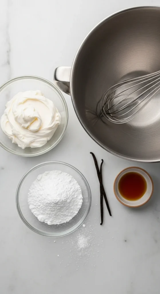 Before you start whisking, make sure you’ve got the right ingredients and tools — because a perfect whipped cream begins with the basics.