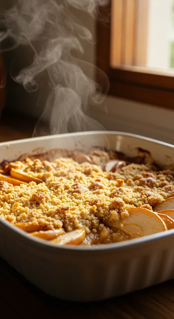 - Sprinkle over apples and bake 40–45 minutes until crisp and bubbly.