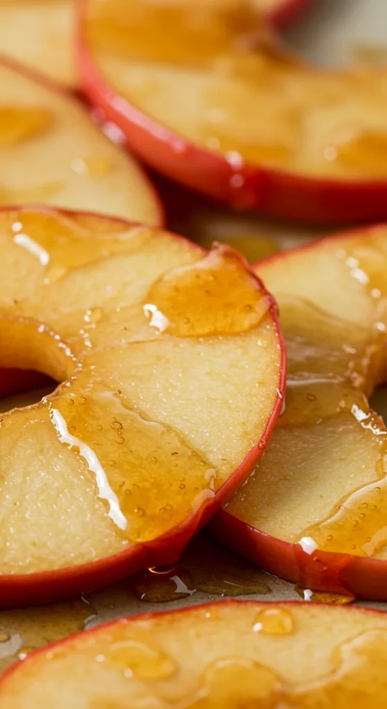 - Layer apples and drizzle maple syrup.