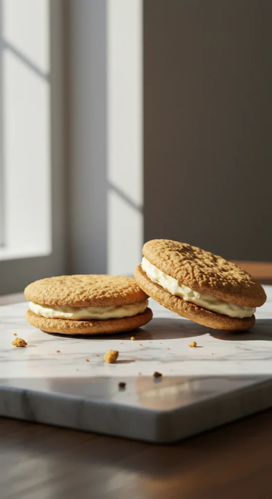 Chewy cookies filled with smooth vanilla frosting.