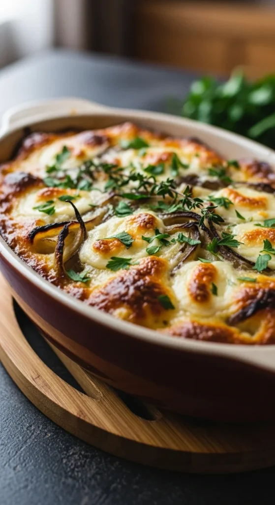 - Bake at 350°F (176°C) for 40–45 minutes, until the top is browned and the center is firm.