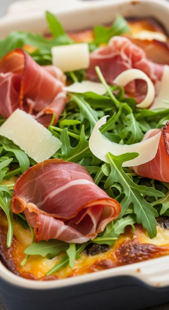 This casserole has a savory, café-style flavor with salty prosciutto and peppery greens.