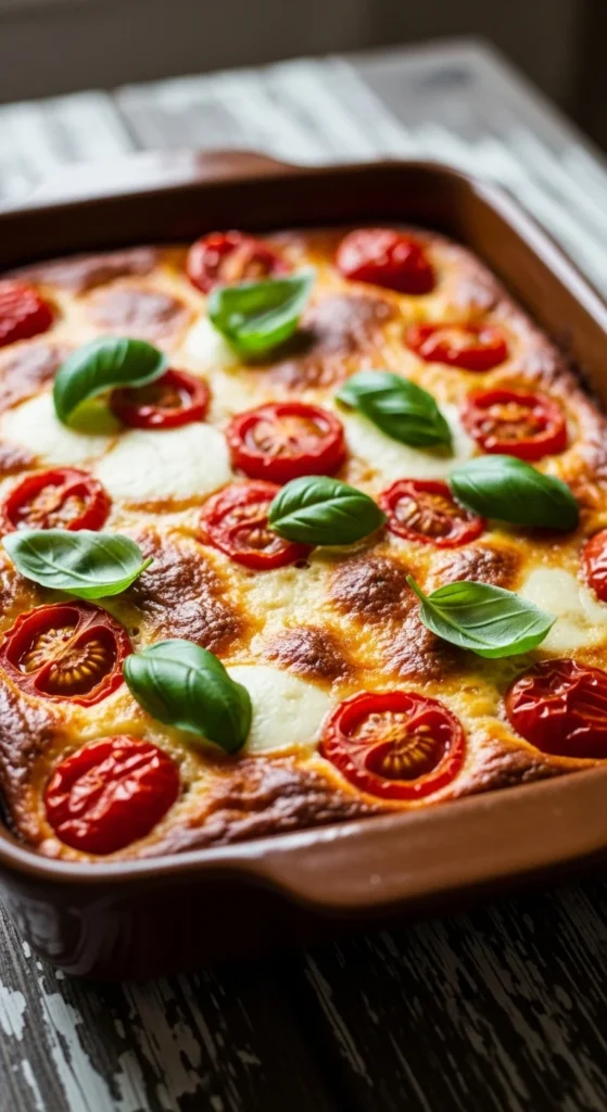 Tomatoes, mozzarella, and basil give this casserole a bright Italian-style twist.