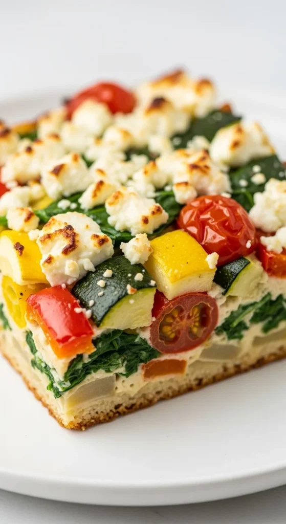 This frittata-style bake is loaded with bright vegetables and tangy cheese.