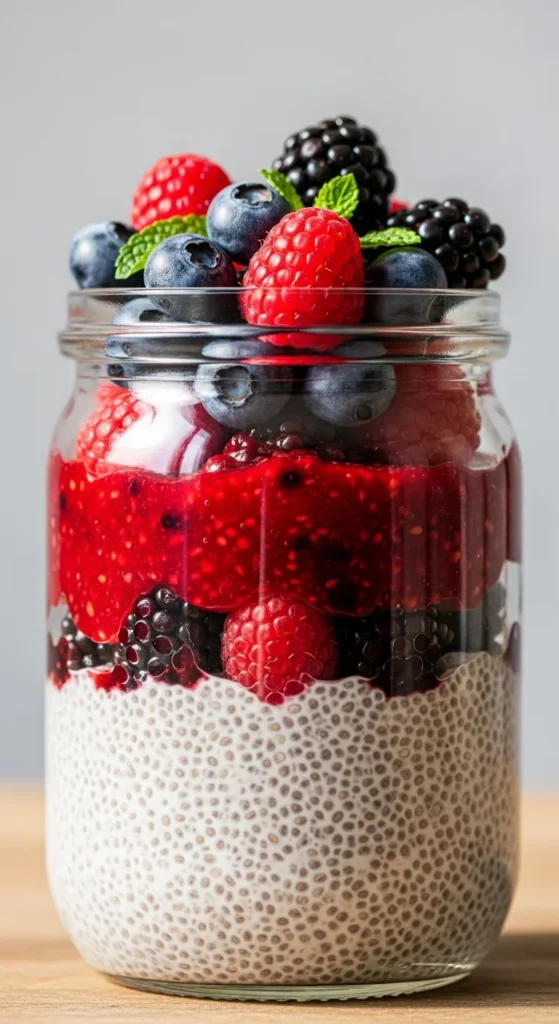 Top with a few whole berries and a tiny sprig of mint for color. Chill 30 minutes if you like a cooler, firmer parfait.
