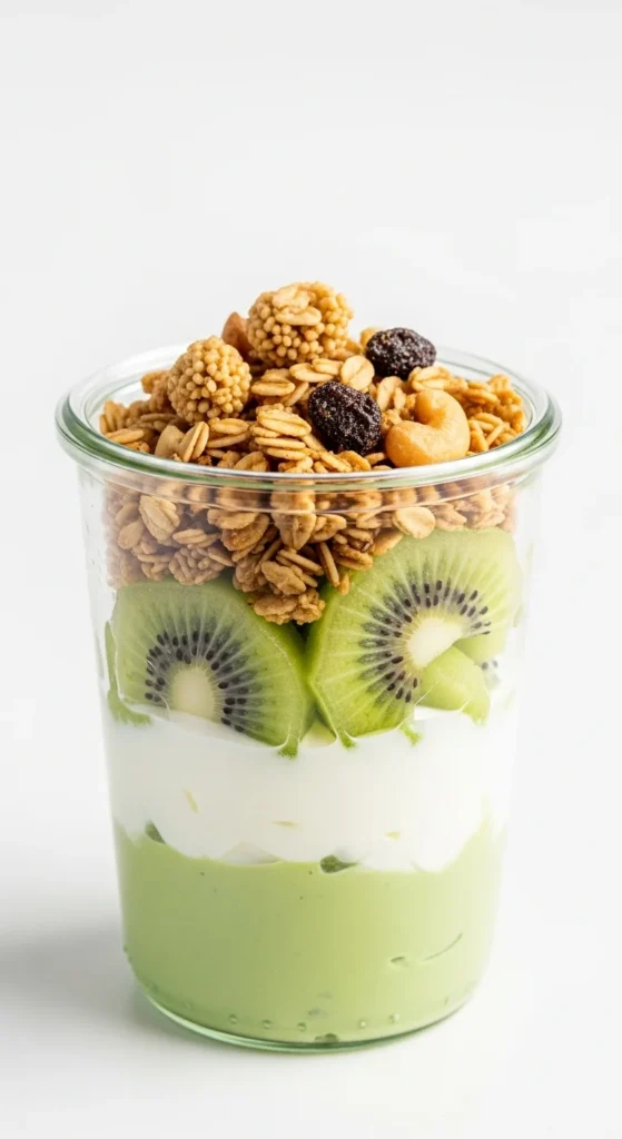 Top with a small pinch of extra matcha powder or a kiwi fan for visual impact.