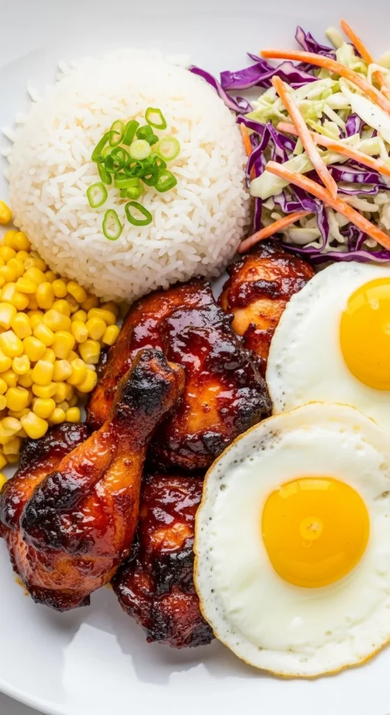 - Build the bowl with rice and eggs.