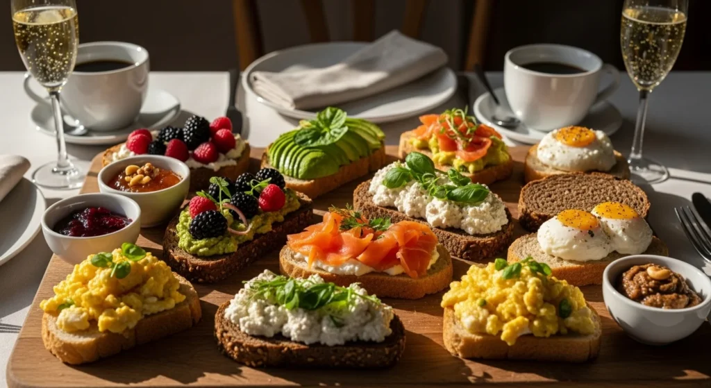A brunch toast board is an easy way to let everyone build their own perfect bite while you keep hosting relaxed. Pile toasted bread, colorful spreads, fresh toppings, and a few fun extras onto one big board, and guests will naturally gather around. These New Year toast-board ideas are simple to prep, highly customizable, and pretty enough for photos before anyone takes the first slice.