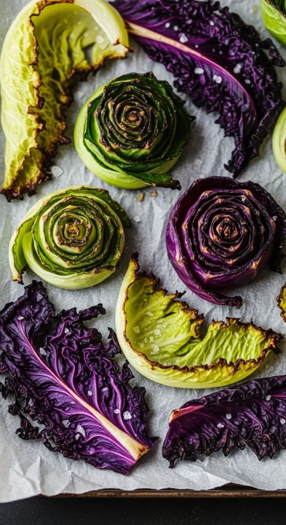 Cabbage leaves become thin, crunchy chips with just a little oil.