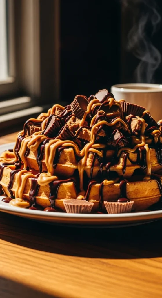 13. Peanut Butter Cup Explosion Waffles