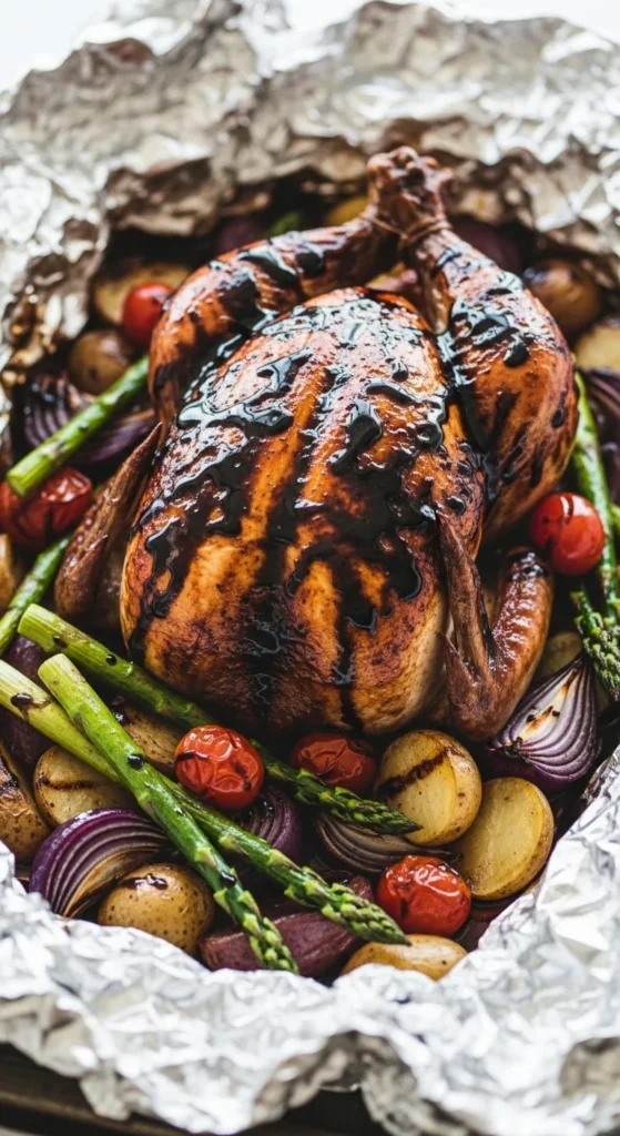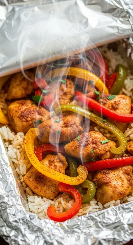 - Seal the foil tightly and bake 30–35 minutes until chicken is cooked through.