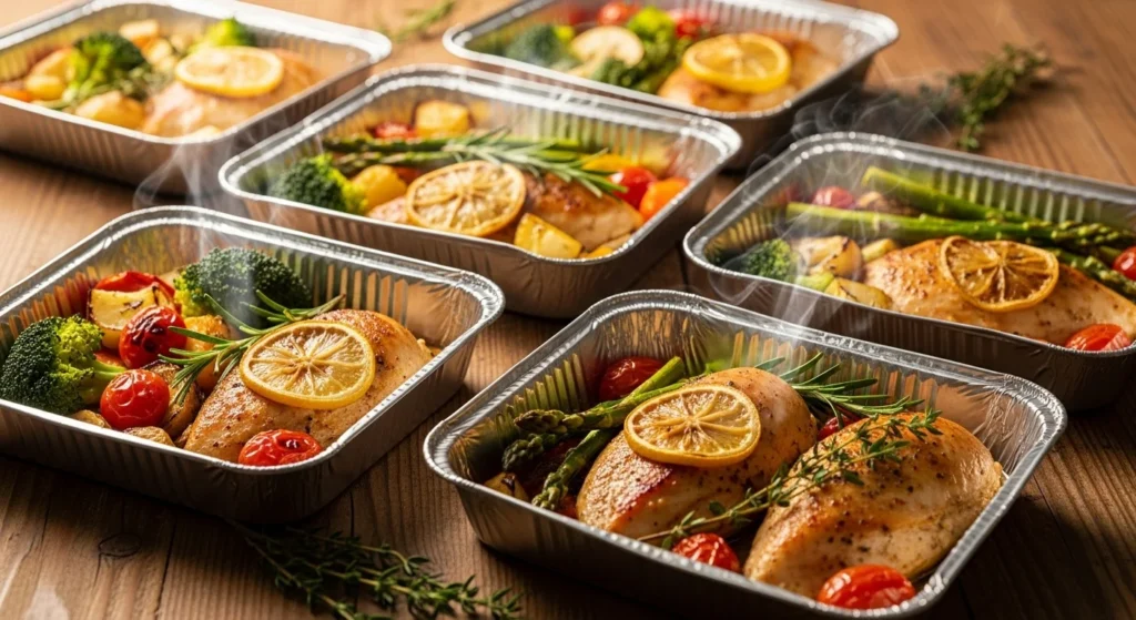 - Seal the foil tightly and bake 30–35 minutes until chicken is cooked through.