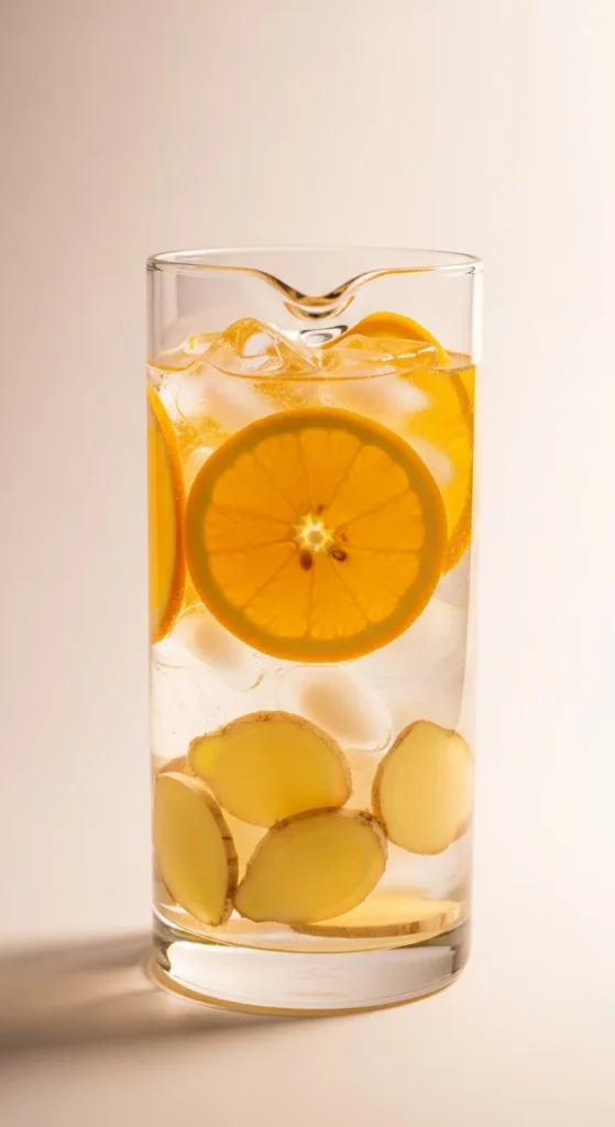 Serve with an orange half-moon on the rim. Add extra ginger slices for those who like more spice.